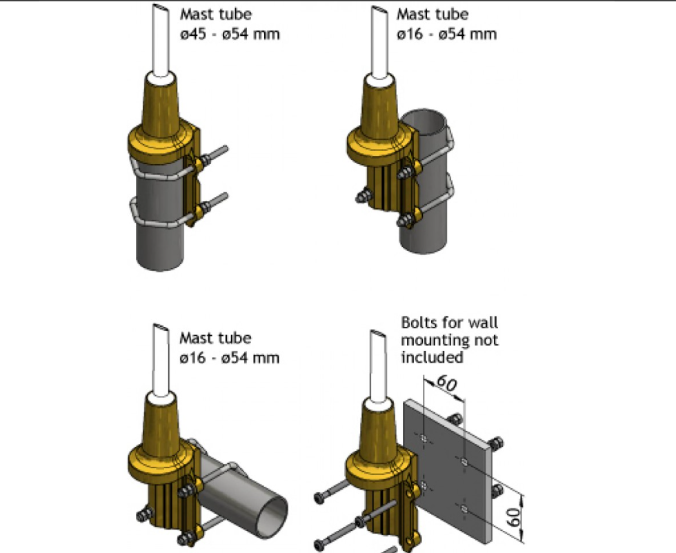 ⑤27-65 mm 桅杆通吃,电缆可内走/外走,5 分钟完成安装;0.8 kg 轻量,一人即可上塔。